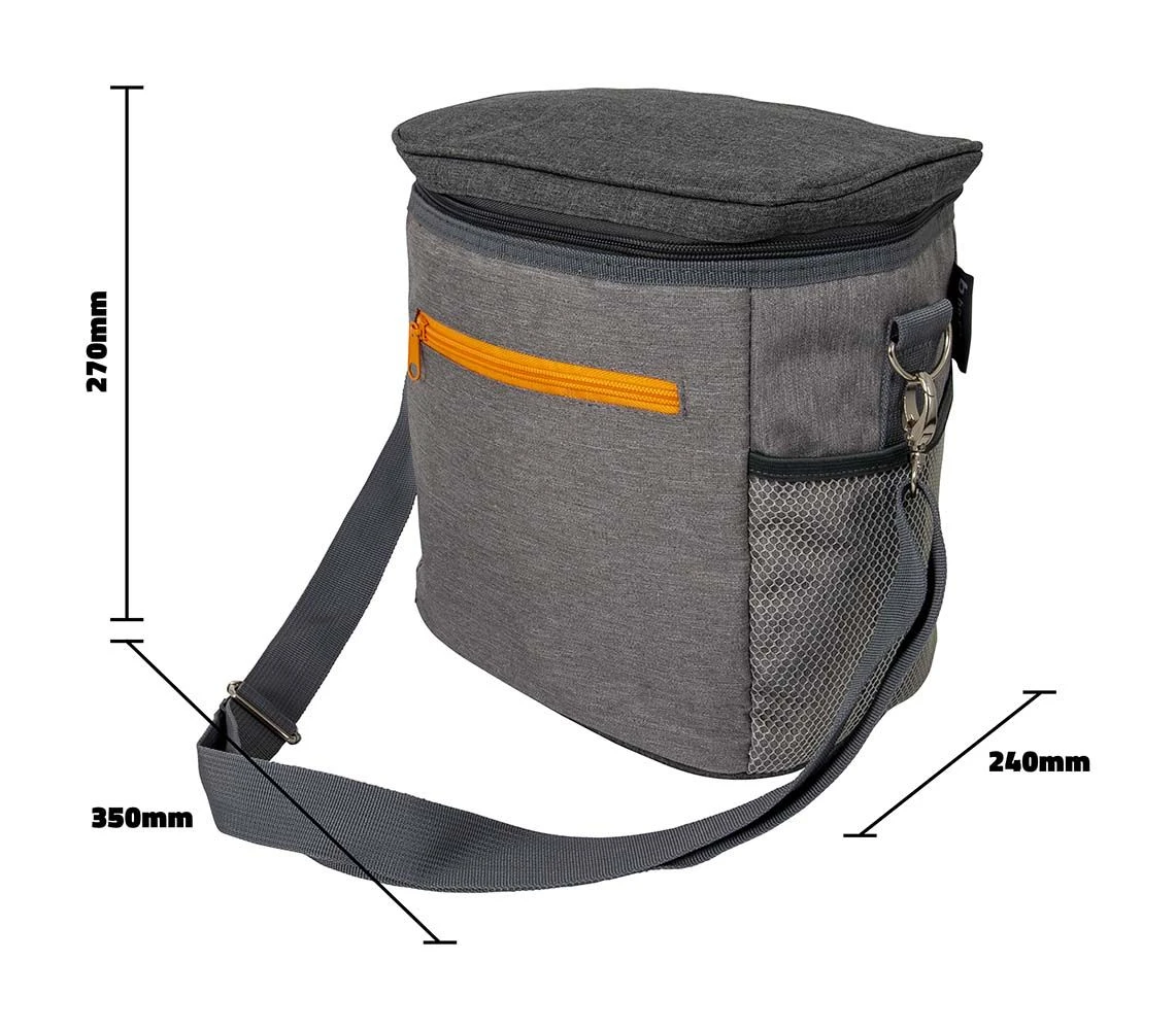 Een zeer handige koeltas. Uitstekende isolerende werking door het EVA isolatie materiaal. De koeltas is voorzien van een handige draagriem, een voorvakje met rits en 2 mesh zijvakjes.