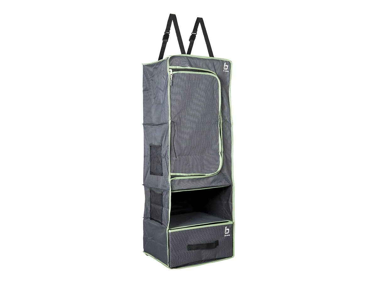De Bo-Camp organizer 4-vaks is een handige hangkast voorzien van 1 deur en 2 vakken waar optioneel lades in kunnen. De organizer is te bevestigen met klittenband, een pees, aan de ophangogen of aan de straps. Ideaal om extra opbergruimte te creëren tijdens je vakantie.