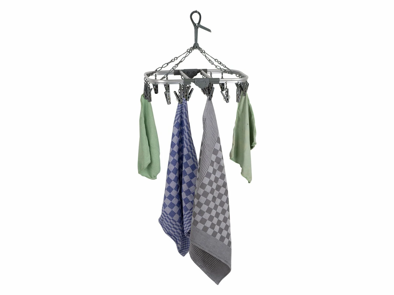 De Bo-Camp aluminium droogcarrousel is voorzien van 20 wasknijpers waardoor je veel kledingstukken tegelijkertijd kunt ophangen.