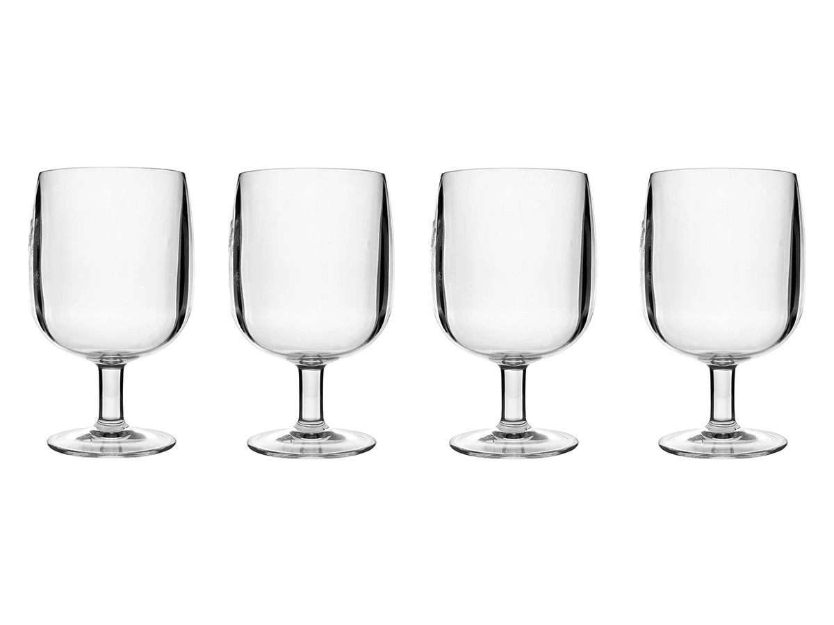 Een set van 4 compact stapelbare wijnglazen. Gemaakt van sterk kunststof, vrijwel onbreekbaar en lichtgewicht. De glazen zijn BPA vrij.