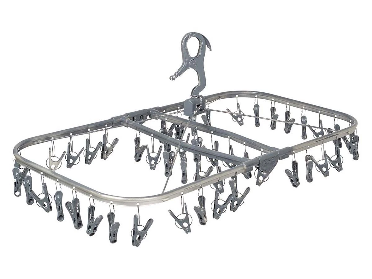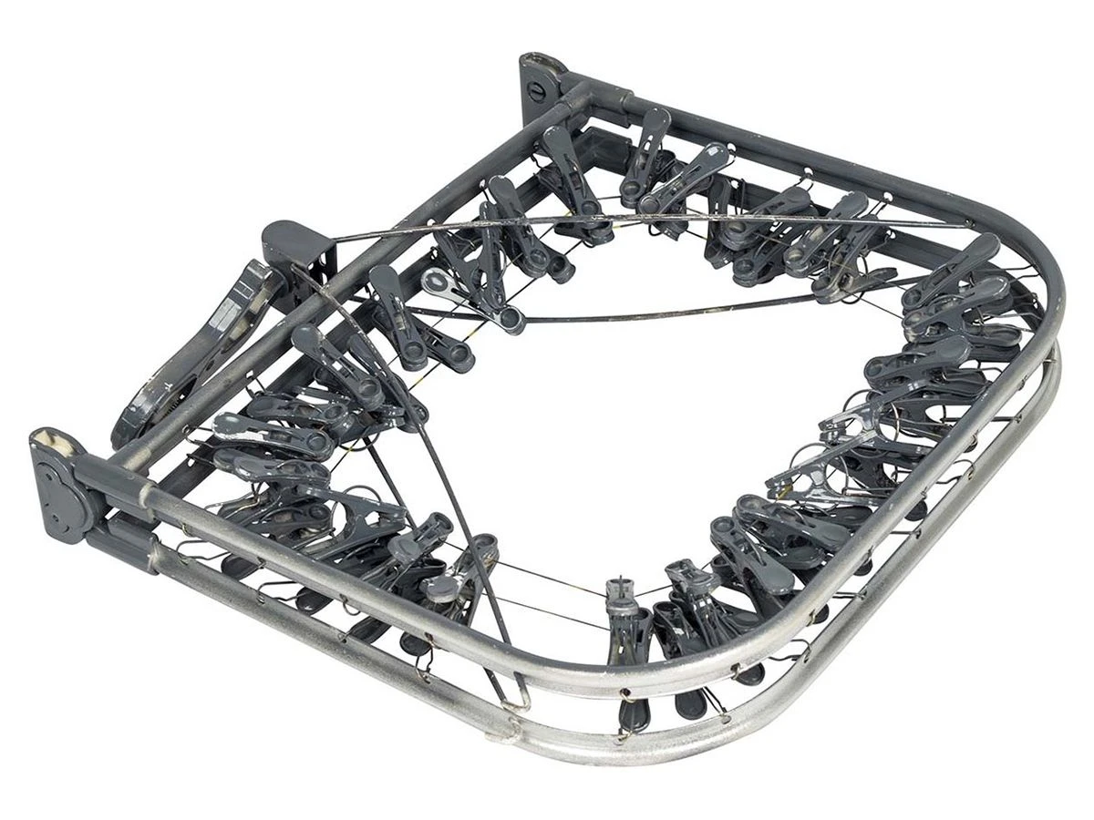 Een rechthoekige grote droogcarrousel gemaakt van hoge kwaliteit aluminium. Op vele plekken te bevestigen door de ophanghaak. Lichtgewicht en zeer makkelijk opvouwbaar. Beschikt over 48 wasknijpers.