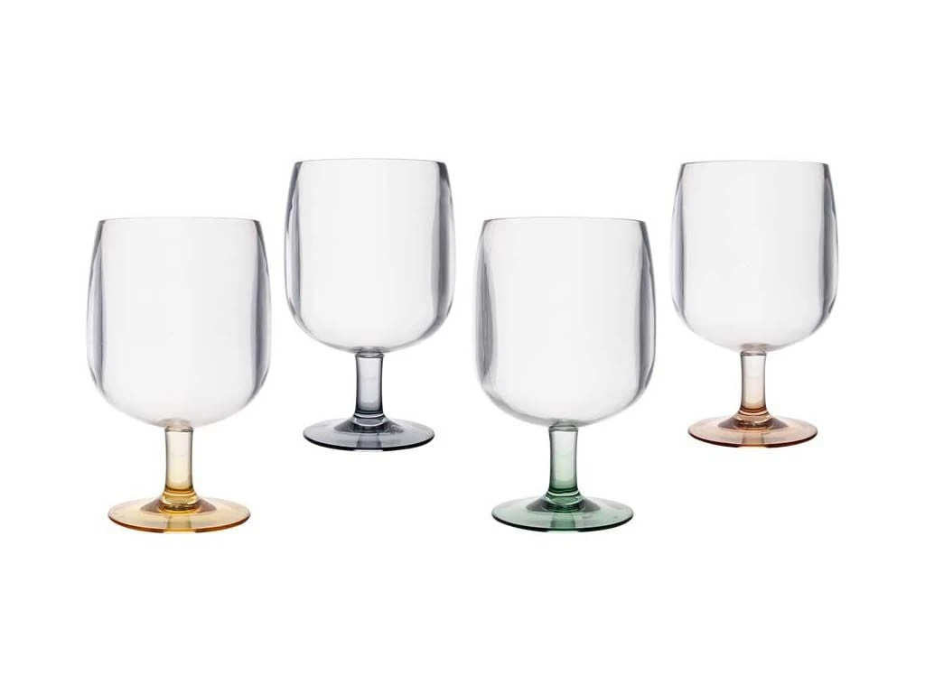 Een set van 4 kleurrijke stapelbare wijnglazen uit de Pastel collectie. Gemaakt van sterk kunststof, vrijwel onbreekbaar en lichtgewicht. De glazen zijn BPA vrij. De glazen zijn leuk te combineren met andere items uit de Pastel collectie.