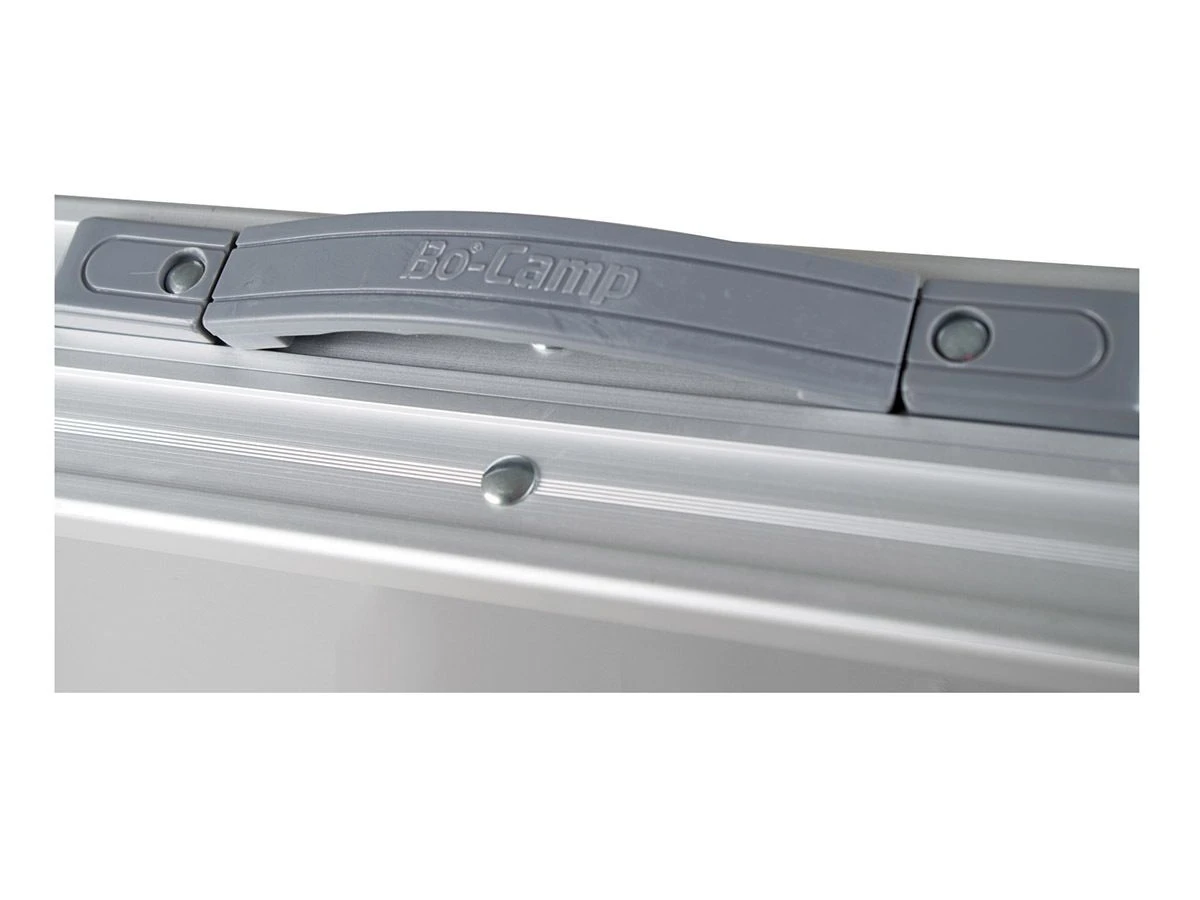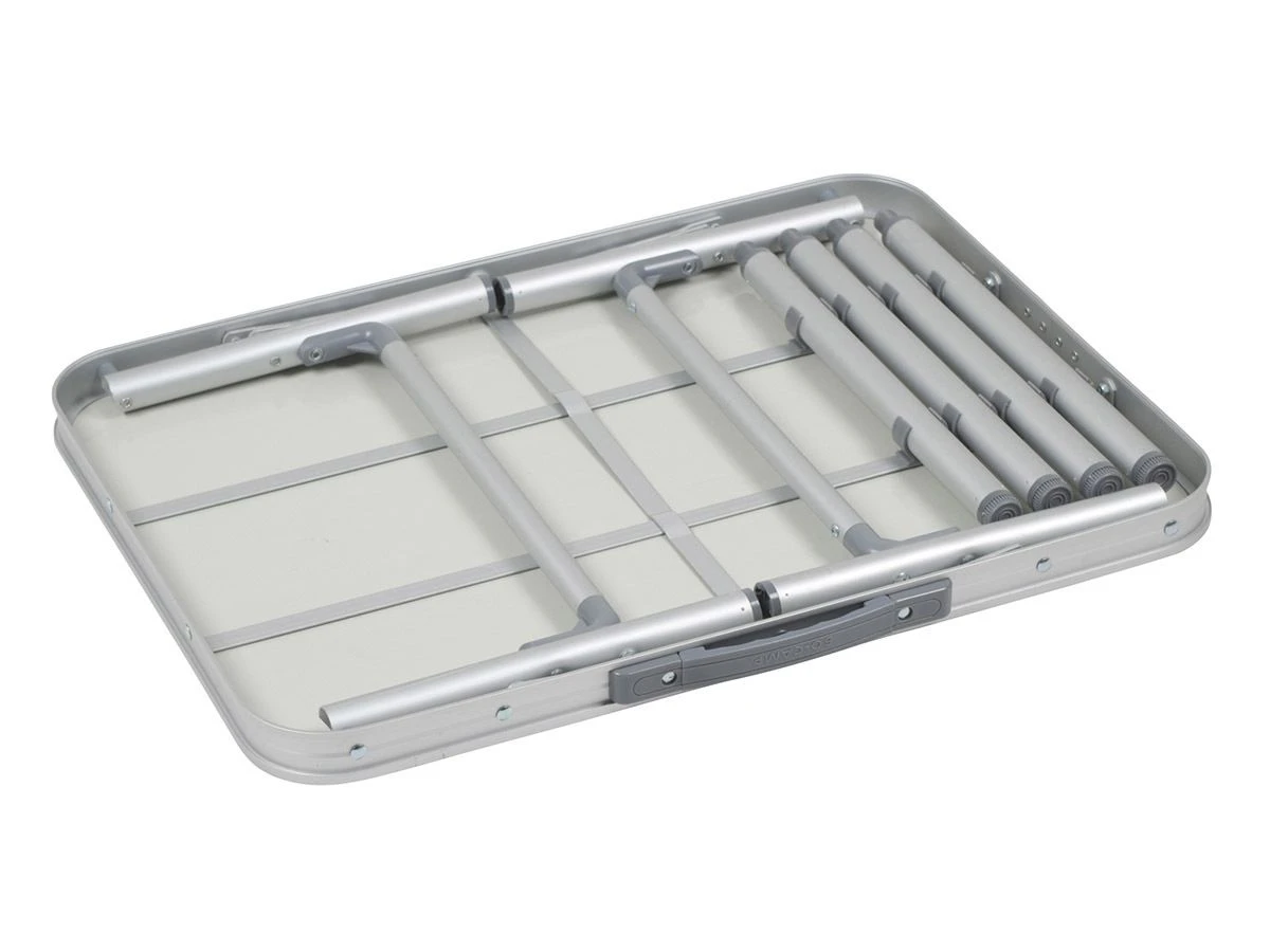De campingtafel is voorzien van een lichtgewicht aluminium onderstel en een aluminium blad. De tafel is water- en hitte bestendig! De tafel is plat in te klappen zodat je hem eenvoudig mee kunt nemen.