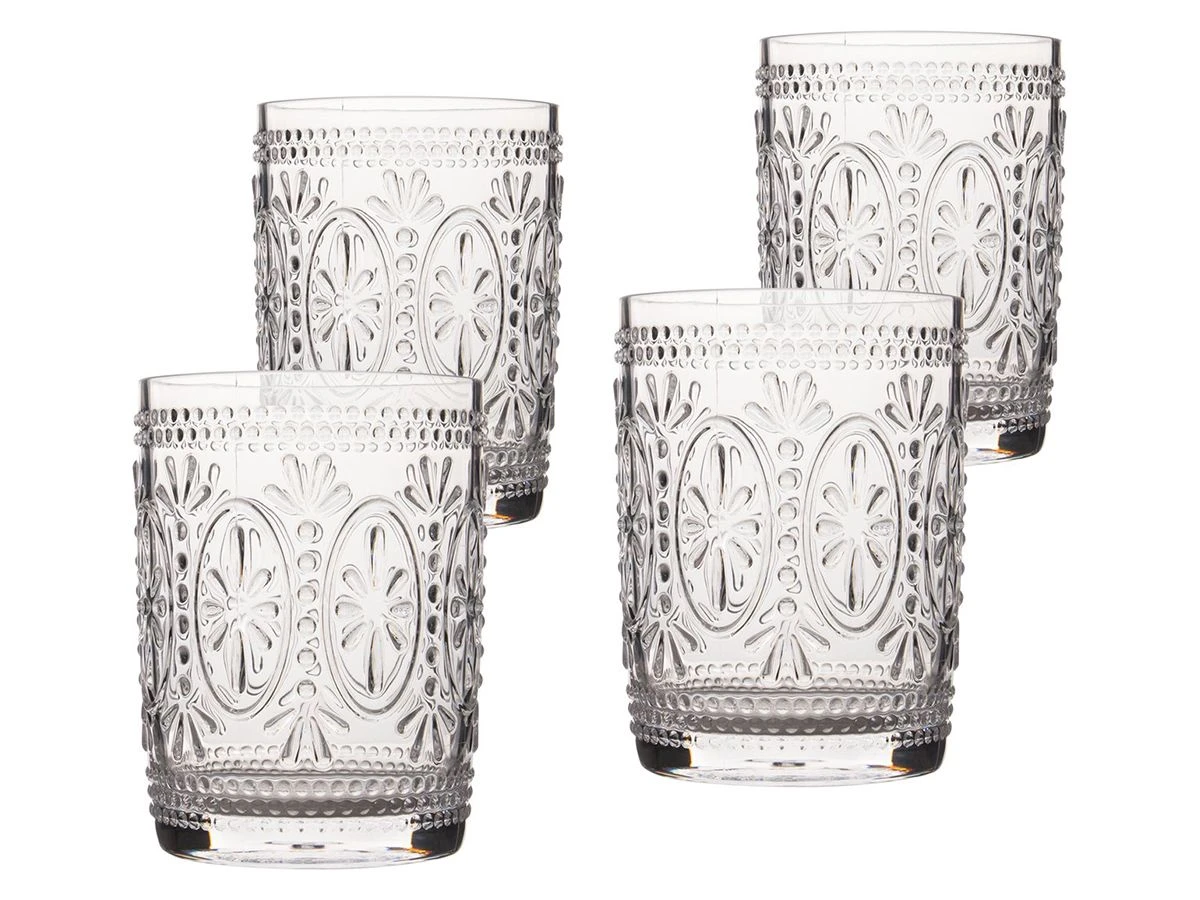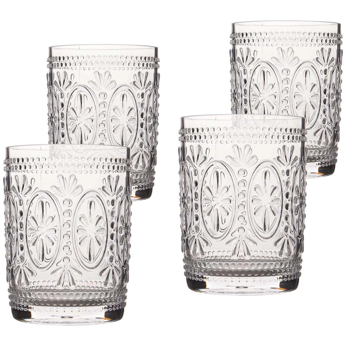 Een set waterglazen met een speels effect. Kraswerend, lichtgewicht en vaatwasmachinebestendig. Gemaakt van zeer sterk kunststof. De glazen zijn BPA vrij. Erg leuk om te combineren met serviesset Sicilian 6181587.