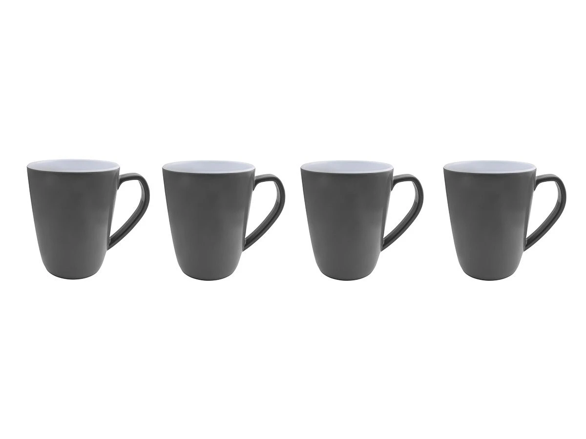 Een set van 4 lichtgewicht en stevige mokken met oor. Vrijwel onbreekbaar breukbestendig en kraswerend. Gemaakt van hoogwaardig 100% melamine. Vaatwasmachinebestendig en food approved.