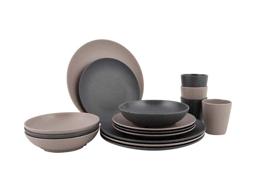 Een stijlvolle serviesset uit de Urban Outdoor collectie. Naast het robuuste design is het servies zeer licht en stevig. Door de mix van beige & grijs is de serviesset leuk te mixen. Het servies is goed te gebruiken op de camping, aangezien deze vrijwel onbreekbaar en kraswerend is. Daarnaast is het Hoxton servies ook uitstekend om thuis en in de tuin te gebruiken! De 16-delige set is gemaakt van hoogwaardig 100% melamine, vaatwasmachinebestendig en food approved. Deze stijlvolle set is geschikt voor 4 personen en bestaat uit 4 dinerborden, 4 ontbijtborden, 4 kommen en 4 mokken. Afmetingen en inhoud: Ø Dinerbord: 26,5 cm. Ø Ontbijtbord: 21 cm. Ø Kom: Ø 17,5 cm en 580 ml. Mok: Ø 8 cm en 280 ml.