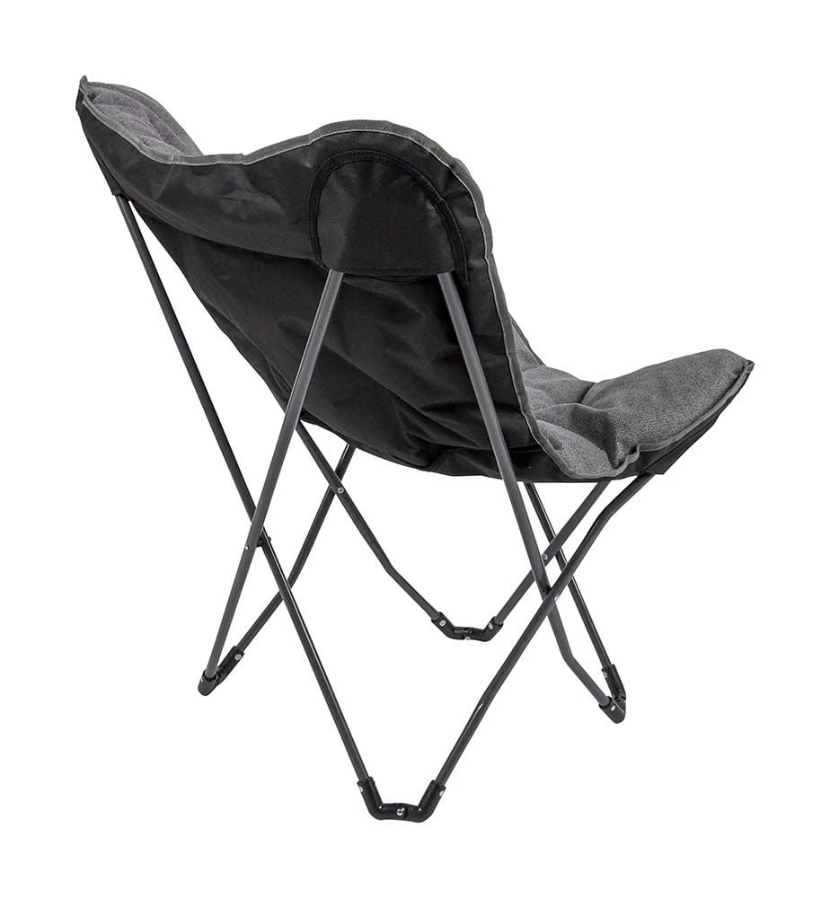 De zitting is gemaakt van Stof Nika. Stof Nika kenmerkt zich aan de een zachte touch met een robuuste uitstraling. De stoel is zeer comfortabel door de gepolsterde stof en de brede en diepe zit. Het frame is eenvoudig in te klappen waardoor de stoel handig mee te nemen is.