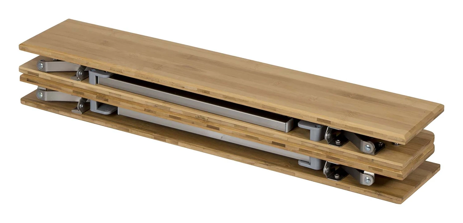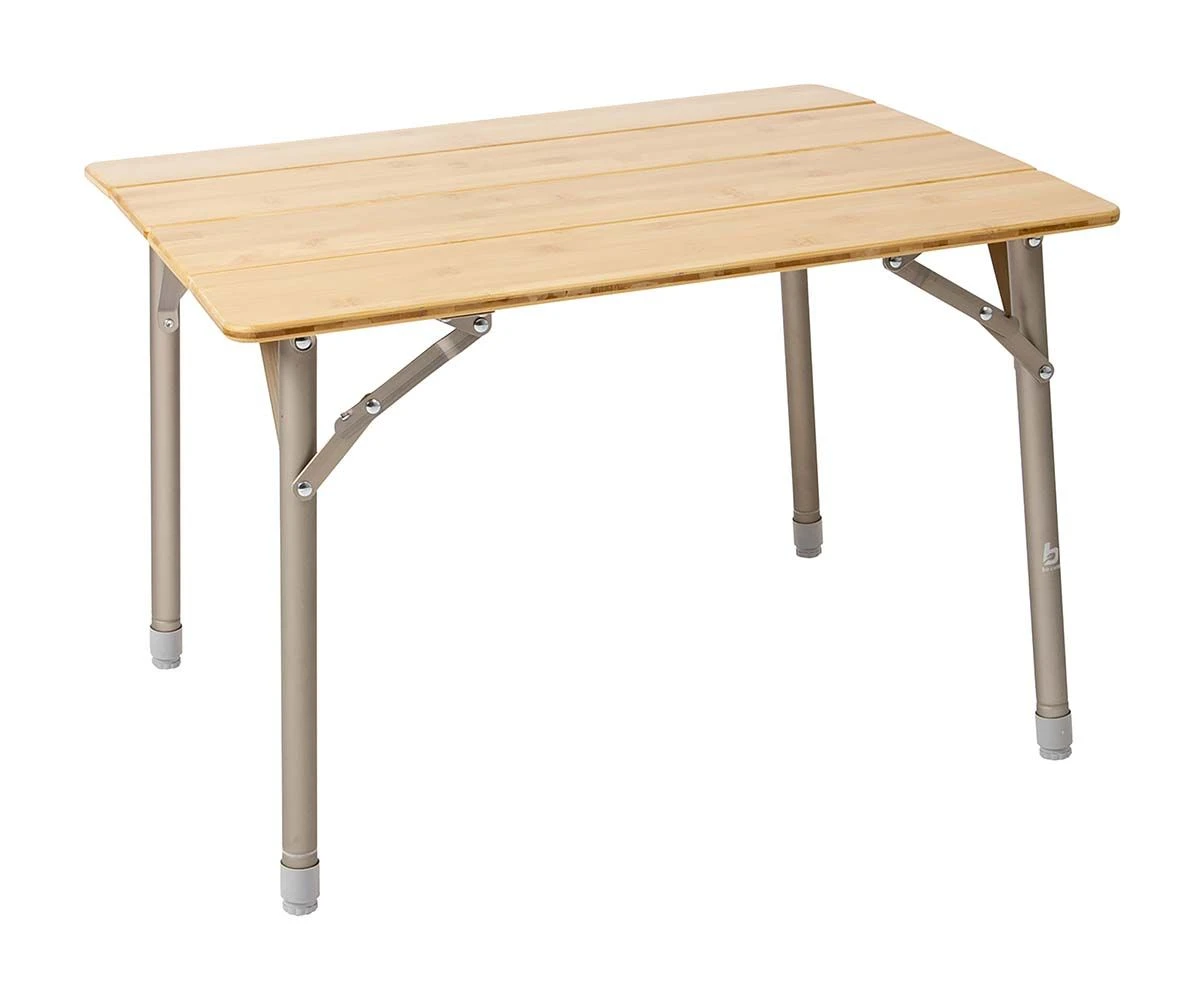 Een extra compacte en luxe tafel. Deze watervaste tafel beschikt over een zeer stevig frame met een dik bamboe tafelblad. Heeft inklapbare poten en een deelbaar lamellen tafelblad. Door de 4 lamellen van de tafel op te vouwen is de tafel compact in te klappen en te vervoeren. De Air-Craft aluminium tafelpoten zijn in hoogte verstelbaar (43 tot 65 cm). Binnen enkele seconden op te zetten. Wordt geleverd in een handige draagtas.