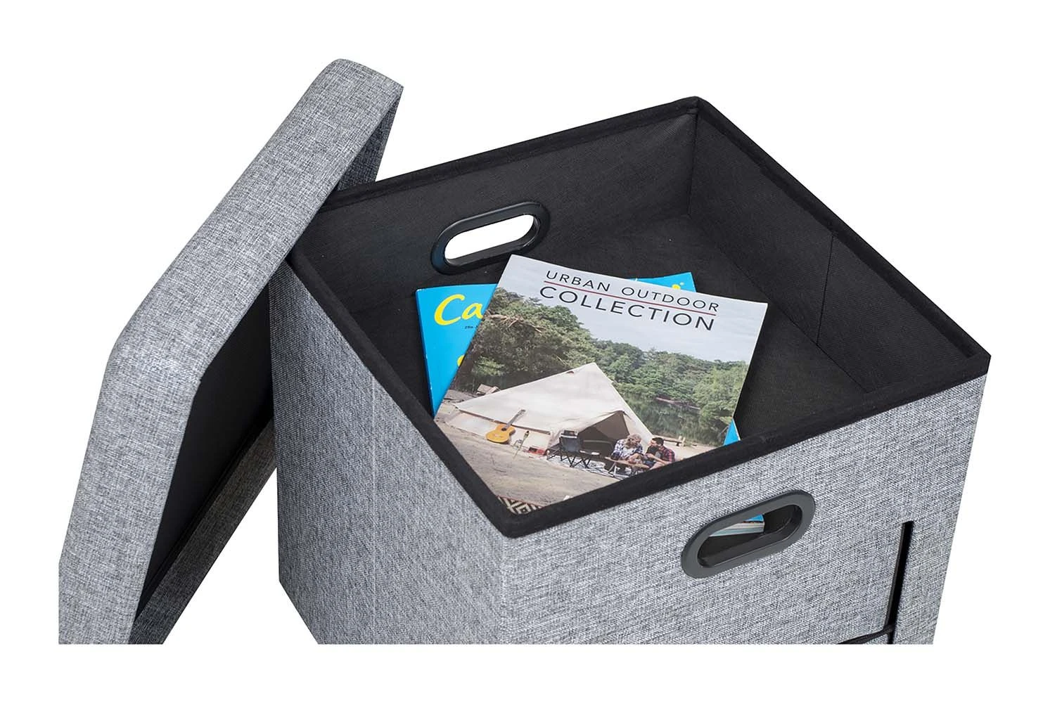 Een trendy ottoman poef, voorzien van 2 lades. Geschikt om spullen in op te bergen maar biedt ook een poef als zitplek. Gemaakt van Oxford Polyester met een linnen look. Maximum capaciteit: 100kg.