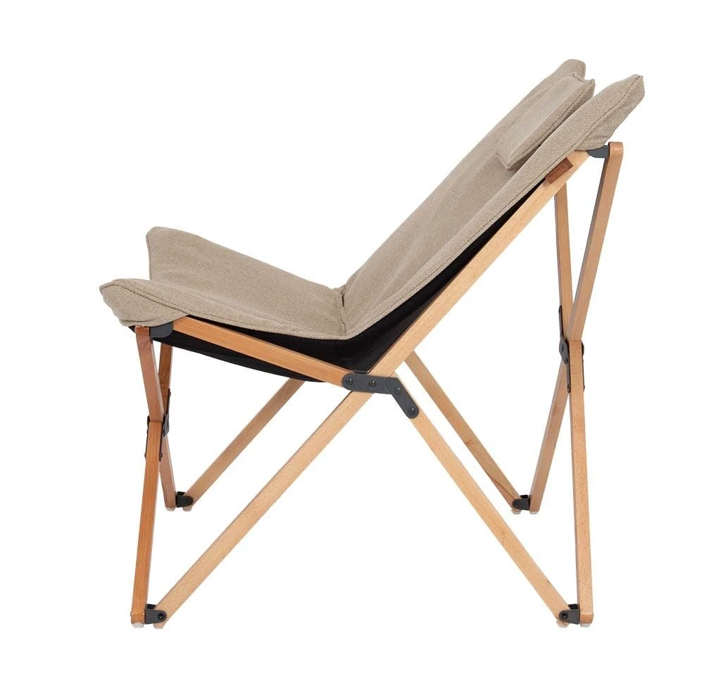 Een zeer luxe en comfortabele relaxstoel. Deze stoel is voorzien van een stijlvol, lichtkleurige houten frame en de zitting is gemaakt van de stof Nika. Stof Nika kenmerkt zich aan de een zachte touch met een robuuste uitstraling. Daarnaast is deze stof voorzien van een comfortabele gepolsterde vulling. Door de combinatie van de gepolsterde stof, de brede en diepe zit en het hoofdkussen is de stoel zeer comfortabel. De stoel is eenvoudig mee te nemen door het inklapbare frame en kan zowel in de woonkamer, op het balkon of in de tuin worden gebruikt!